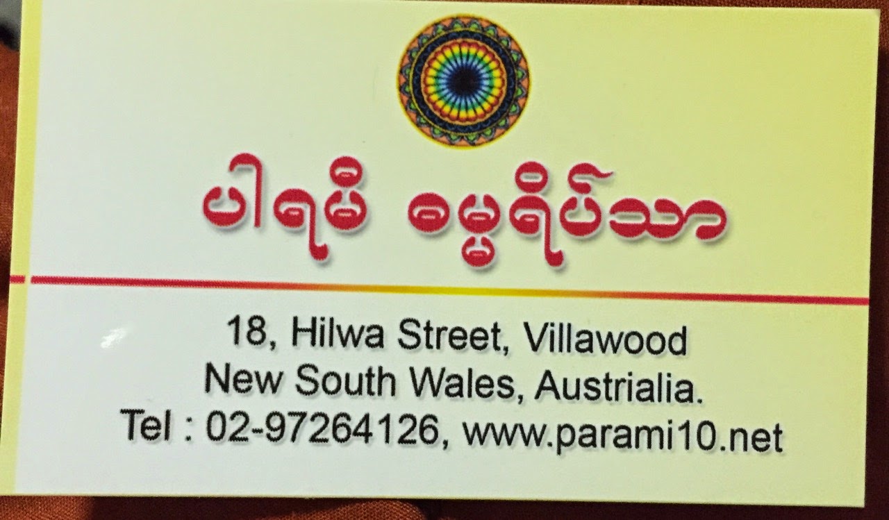 ၾသစေတ်းလ်ႏိုင္ငံ၊ နယူးေဆာ့ေဝးျပည္နယ္၊ ဆစ္ဒနီခ႐ိုင္၊ ဗီလာဝုၿမိဳ႕၊ ပါရမီဓမၼရိပ္သာမွာ “ဗိုလ္ခ်ဳပ္ေအာင္ဆန္း ႏွစ္တစ္ရာႏွင့္ တစ္လျပည့္” အထိမ္းအမွတ္အျဖစ္ ၂၀၁၅ ခုႏွစ္၊ မတ္လ ၁၃ရက္ေန႔ ဓမၼေဘရီ ဆရာေတာ္ အရွင္ဝီရိယ က ဓမၼသင္တန္းသားမ်ားအား ပဲျပဳတ္-နံျပားအစရွိေသာ စားေသာက္ဖြယ္ တို႔ျဖင့္ ကုသိုလ္ျပဳၿပီး ဗိုလ္ခ်ဳပ္ေအာင္ဆန္း ႏွင့္ အာဇာနည္ပုဂၢိဳလ္မ်ားအား အမွ်ေပးေဝခဲ့ၾကသည္။