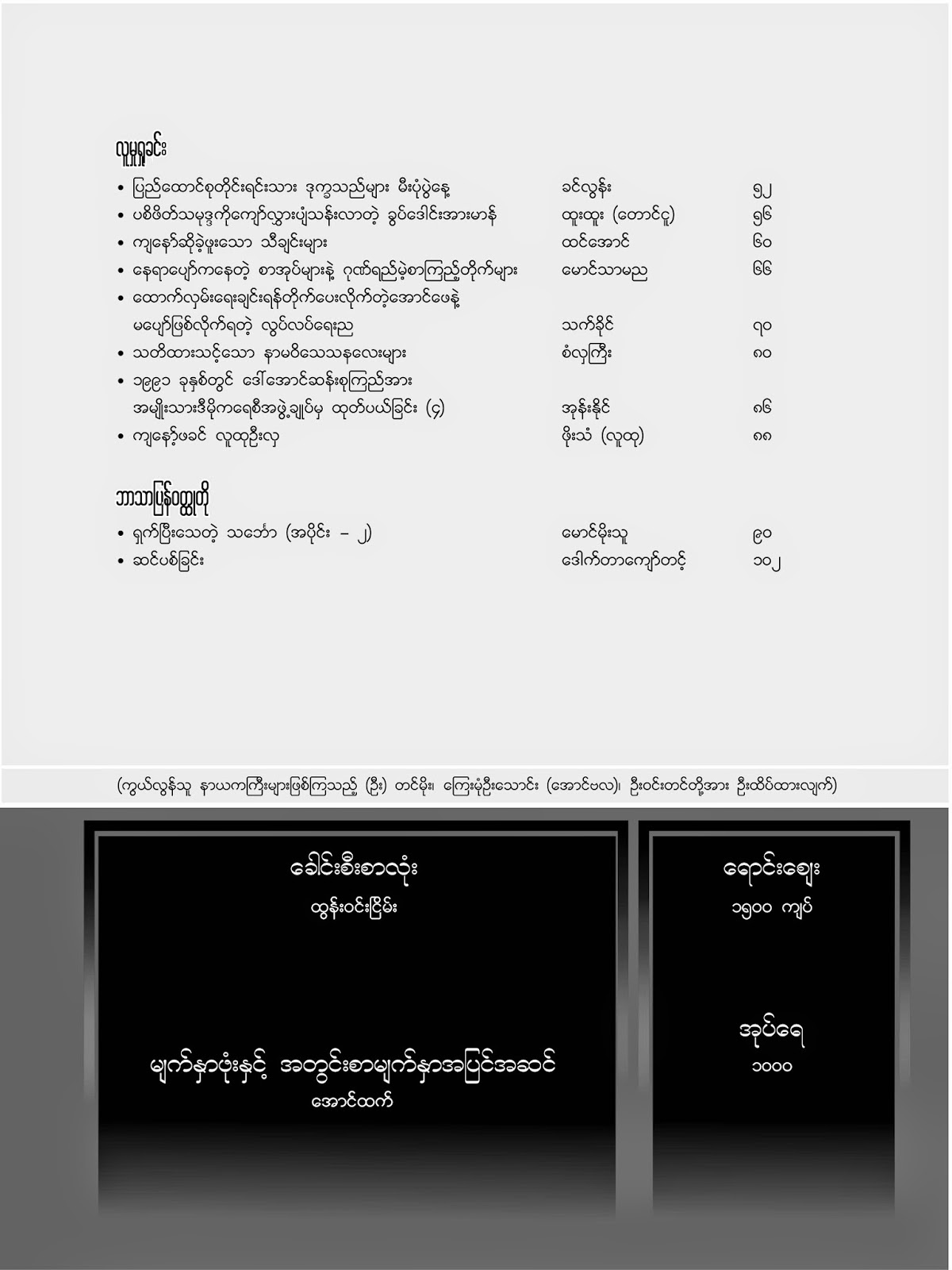 ပရိသတ္ေတာင္းဆိုုမႈေၾကာင့္ တအုုပ္ခ်င္း အိမ္တိုုင္ရာေရာက္ စာတိုုက္ကေန မွာၾကားလိုုသူမ်ားက မိုုးမခ ရန္ကုုန္လိပ္စာကိုု ဆက္သြယ္မွာၾကားႏိုုင္ပါတယ္။