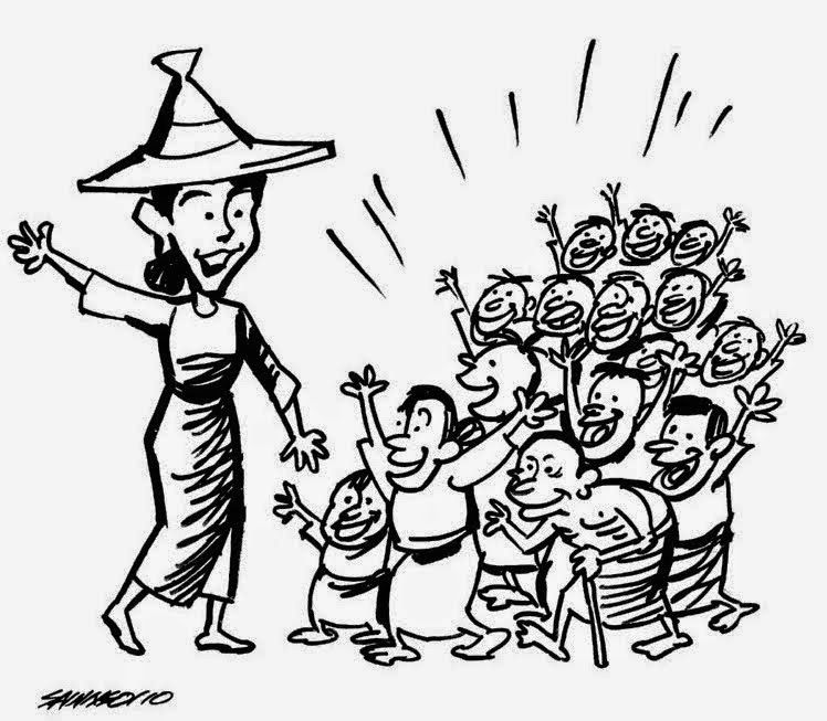 မသူဇာကေတာ႔ ရွင္းသည္။ ေဒၚစုကိုယံုသည္။ ေဒၚစု ေျပာစကားေတြဆိုလွ်င္ အလြတ္ရလုနီးပါးျဖစ္ေအာင္ အလြတ္ရေနတတ္ၿပီး ယံုလို႔ ပံုအပ္ထားေသာ သူျဖစ္သည္။ ေခၚတာေတာင္မွ ေမစု၊ ေမစု ဟု ခ်စ္စႏိုး ကင္ပြန္း တပ္ေသာေၾကာင္႔ ကိုေသာင္းျမင္႔က “ငါ႔အေမက်ေတာ႔ မင္းက အန္တီလို႔ ေခၚတယ္။ မင္းရိွလို႔ ရိွေနမွန္းေတာင္ မသိတဲ႔ ေဒၚစုက်ေတာ႔ တစ္ေမတဲ႔ ေမေနတာပါလားကြ” ဟု စကားနာ ထိုးတတ္သည္။ မသူဇာကေတာ႔ ကိုေသာင္းျမင္႔ မေက်နပ္လို႔ ေလျဖတ္ခ်င္ျဖတ္။ ေဒၚစုမွ ေဒၚစု။ ေဒၚစု၏ သဲသဲလွဳပ္ ပရိတ္သတ္။ “ေဒၚစု ၿငိမ္းခ်မ္းေရး ႏိုဘယ္လ္ဆုရထားတာ အိုဘားမား ရသလို မ်က္ႏွာလို မ်က္ႏွာရ ရထားတဲ႔ ဆုၾကီး မဟုတ္ဘူးေတာ႔။ သူေျပာတ႔ဲစကား၊ သူ႔ႏိုင္ငံေရး သက္တမ္း တစ္ေလွ်ာက္ လိုက္ၾကည္႔လိုက္စမ္းဘာ။ သူ႔အသက္ ရန္ရွာတဲ႔ လူေတြေတာင္မွ အျပစ္ရွာစကား မေျပာတာ ရွင္တို႔လို ေၾကာင္ေတာင္ေတာင္ မဘသ ဆိုၿပီး ခါေတာ္မွီ လုပ္စားတဲ႔ အဖြဲ႔သေဘာက် လိုက္ေျပာရမယ္ဆိုတာကေတာ႔ ကိုေသာင္းရယ္ ဒုကၡၾကီးလိုက္ပါဘိေတာ႔” ဟု ႏိွပ္ကြပ္ေသာအခါ ကိုေသာင္းျမင္႔ တို႔ လင္မယား စကားမေျပာဘဲ ေနၾကတာ လခ်ီၾကာသည္။