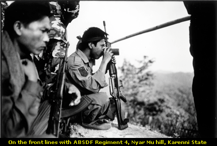 “ေအာင္ေဖ သူက ခြဲမွဴး ေစာ…… သူေပါ့၊ သူ႔ဆရာ မန္းေအာင္တင္ျမင့္နဲ႔က က်ေနာ္နဲ႔က သူငယ္ခ်င္းေတြေလ၊ သူက ေအာင္ေဖ လူ႔ေဘာင္သစ္ ေက်ာင္းသားအဖြဲ႔က” သူက အဲဒီလိုု မိတ္ဆက္ေပးေတာ့ ကရင္တပ္မွဴးက ေတြ႔ရတာ ဝမ္းသာပါတယ္၊ လက္ဘက္ရည္ေသာက္ပါဦး နယ္ေျမကေတာ့ ေအးခ်မ္းပါတယ္၊ ဘာညာနဲ႔ ေျပာေတာ့တာပဲ။