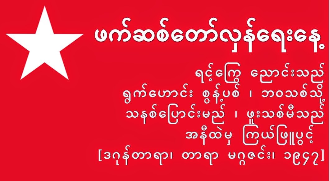 စစ္ဝါဒီ ဖက္ဆစ္ေတြရံႈးခဲ့တယ္၊ အခုလည္း မုခ် ရံႈးပါဦးမယ္။ ညီညြတ္ေသာ ေတာ္လွန္အင္အားစုကိုသာ တည္ေဆာက္ၾကပါ။