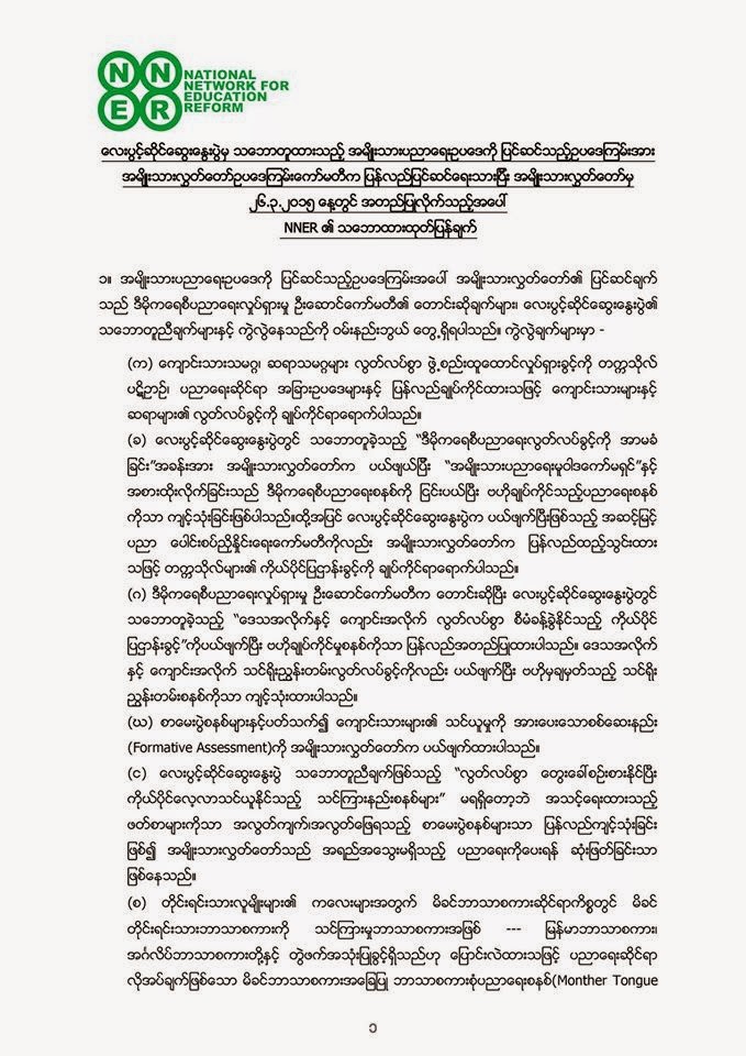 NEER က အမ်ဳိးသားပညာေရးဥပေဒျပင္ဆင္သည့္ ဥပေဒၾကမ္းနဲ႔ အမ်ဳိးသားလႊတ္ေတာ္အေပၚ သေဘာထားထုတ္