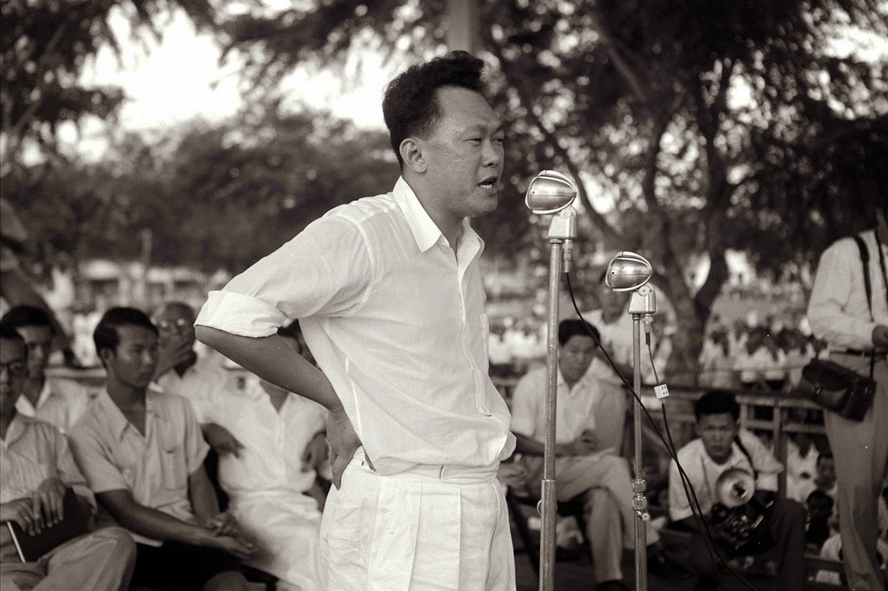 ၂။ ၁၉၅၉ ဇူလုိင္ ၂၁ ရက္၊ အာဏာရ ပါတီျဖစ္လာတဲ့ လီကြမ္ယူရဲ႕ people action party (ပီေအပီ)။ လီကြမ္ယူဟာ ကိန္းဗရစ္ခ်္တကၠသိုလ္ၾကီးမွာ ဥပေဒဘြဲ႕ကို ပထမတန္းစား ဂုဏ္ထူးနဲ႕ ေအာင္ျမင္ခဲ့တယ္။ ထူးခြ်န္သူအလုိက္စီေတာ့ ေနာင္ကိန္းဗရစ္ခ်္မွာ ဥပေဒပေရာဖက္ဆာၾကီးေတြျဖစ္လာမယ့္ ထိပ္တန္းအေက်ာ္အေမာ္နွစ္ဦးရ႕ဲ ေရွ႕မွာ လီကြမ္ယူနာမည္ရွိခဲ့တယ္။ အာဏာရပါတီကို ေခါင္းေဆာင္ျပီး ၀န္ၾကီးခ်ဳပ္တစ္ေယာက္ဘ၀ ပထမဆံုးေရာက္လာခဲ့တဲ့ လီကြမ္ယူဟာ အသက္ ၃၅ ႏွစ္သာ ရွိပါေသးတယ္။ Legislative Assembly ေခၚ ဥပေဒျပဳလႊတ္ေတာ္မွာ ၀န္ၾကီးခ်ဳပ္တစ္ေယာက္ေနနဲ႕ ပထမဆံုးမိန္႔ခြန္းေပးဖို႕ လက္ႏွစ္ဖက္ေနာက္ပစ္ျပီး ၀င္လာခဲ့တဲ့ လီကြမ္ယူက သူ႕ရဲ႕ Stand ေခၚ ရပ္တည္သြားမယ့္ ရည္ရြယ္ခ်က္ကို ျပတ္ျပတ္သားသားၾကီး ေဖာ္ျပခဲ့ပါတယ္။ မိန္႔ခြန္းရဲ႕ အႏွစ္ခ်ဳပ္က “Vow to cleanse the system of the evils of the past” ၊ “အတိတ္က စနစ္ဆိုးကို ရွင္းလင္းသုတ္သင္ဖို႕အတြက္ သႏၷိဌာန္” ပါပဲ။ စင္ကာပူကို ေျမလွန္ပစ္ဖို႕အတြက္ ျပတ္သားရဲရင့္တဲ့ ဆံုးျဖတ္ခ်က္နဲ႕အတူ သူတို႔ (ပီေအပီ) ရဲ႕စြမ္းေဆာင္ရည္ကို ေနာင္ငါးႏွစ္သက္တမ္းအတြင္း မွတ္ေက်ာက္တင္ ဖို႔ပါ စိန္ေခၚကမ္းလွမ္းခဲ့ပါတယ္။ (2)