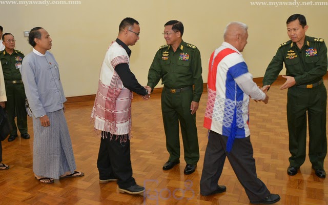 ၉။ ဒါမွတပ္ခ်ဳပ္အေပၚတိုင္းရင္းသားေတြရဲ႔႕ယံုၾကည္မွူပိုတက္လာမွာျဖစ္တယ္။နွစ္ဦးနစ္ဖက္ယံုၾကည္မွူ အားနည္းေနတာကို မ်ားမ်ားေတြဆံုနိုင္ေလ တိုးတက္ေလမို႕ KNUနဲ႔ တပ္ခ်ဳပ္ေတြ႔ဆံုမွူက သက္ေသျပတယ္။ ဒီေနရာမွာ ေဒၚေအာင္ဆန္းစုၾကည္က သေဘာထားၾကီးမွူနဲ႕ျပည္သူလူထု အတြက္ငွဲ႕ညွာျပီး ဥေရာပအီးယူက စီးပြါးေရးျပန္ပိတ္ဆို႔ရမလား ေမးတာကို တားခဲ့တဲ့လုပ္ရပ္အား အတုယူရပါမယ္၊ “ျငိမ္းခ်မ္းေရးေဆြးေနြးေနတာ အစဘဲရွိေသးတယ္ … ေအာက္ေျခမွာ ႏွစ္ဘက္စစ္သားေတြ ေသနတ္ေဘးခ်ျပီး အရက္အတူတူေသာက္၊ ခြက္ေတာင္တိုက္ေနၾကျပီဆိုတာ” သိေစခ်င္တယ္။ ဒါ့ေၾကာင့္လည္္း တပ္ခ်ဳပ္အေနနဲ့႕ တခုတည္းေသာ တပ္မေတာ္ရွိရမည္လို႔ ဆိုမိန္႕ေနမဲ့အစားတိုင္းရင္းသားလက္နက္ကိုင္မ်ား အတူလက္တြဲခ်င္လာေအာင္ မူဝါဒ၆ခ်က္ကို အေသဆုပ္ကိုင္ မထားဘဲဆိုရင္၊ တပ္ျပဳျပင္ေျပာင္းလဲေရး လုပ္မယ္ဆိုရင္ ျငိမ္းခ်မ္းေရးစစ္မွန္ျပီး ေရရွည္တည္တန္႔သြားမွာျဖစ္ ေၾကာင္းတင္ျပလိုက္ပါတယ္။