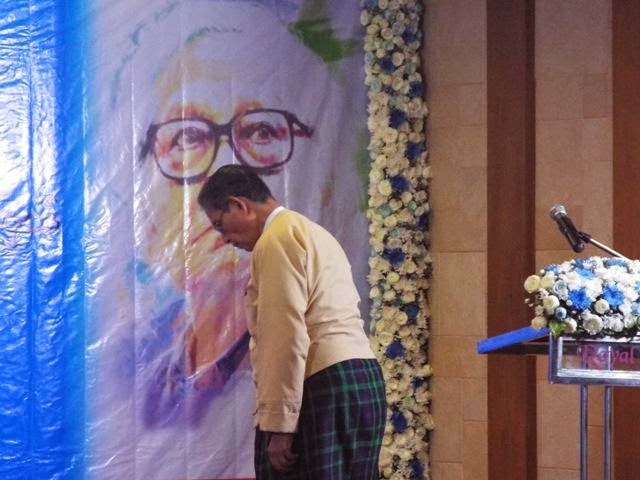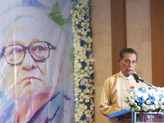 “ဒီအခမ္းအနားမွာ ဆရာႀကီးဦးဝင္းတင္ကုိ ဒီမုိကေရစီရဲေဘာ္ တစ္ေယာက္အေနနဲ႔ဂုဏ္ျပဳခ်င္ပါတယ္။ ေခါင္းေဆာင္တစ္ေယာက္အေနနဲ႔မဟုတ္ဖူး ရဲေဘာ္တစ္ေယာက္အေနနဲ႔၊ ေခါင္းေဆာင္နဲ႔ ရဲေဘာ္ဟာမတူဘူး၊ ေခါင္းေဆာင္ဆုိတာထိပ္ကေနၿပီး လုပ္မယ္အမိန္႔ေပးမယ္၊ ရဲေဘာ္ဆုိရင္္ ေန႔တဓူဝအလုပ္ေတြကုိ ေအာက္ေျခသိမ္းလုပ္နုိင္တဲ့ အရည္အခ်င္းရွိတဲ့ပုဂၢိဳလ္ေတြကုိ က်မက ရဲေဘာ္လုိ႔သတ္မွတ္ပါတယ္၊ တကယ္ေတာ့ေခါင္းေဆာင္ေတြဆုိတာ ရဲေဘာ္ေတြမရွိပဲ မရွိနိုင္ပါဘူး၊ အိမ္တစ္ခုဆုိတာ ေခါင္းမုိးႀကီးပဲ ရွိေနလုိ႔ရတာမဟုတ္ဖူး၊ ေခါင္မုိးက ေလေပၚပ်ံေနလုိ႔ရတာမဟုတ္ဖူး၊ ေခါင္မုိးကုိေထာက္ထားတဲ့ အေထာက္ေတြရိွမွသာ ေခါင္မုိးဆုိတာ ရွိနုိင္မွာပါ၊ ေခါင္းေဆာင္ဆုိတာ ေခါင္မုိးပါ ေအာက္ကအေထာက္ေတြမရွိပဲနဲ႔ ရဲေဘာ္ေတြမရွိပဲနဲ႔ ေခါင္းေဆာင္ဆုိတာ မရွိနုိင္ပါဘူး၊ ဆရာႀကီးဦးဝင္းတင္ဟာ က်မတုိ႔ရဲ႕ဒီမုိကေရစီေခါင္းေဆာင္တစ္ဦးျဖစ္ခဲ့သလုိ တကယ့္ကုိအားကုိး ရတဲ့ တကယ့္ကုိအင္အားျပည့္ဝတဲ့ ဒီမုိကေရစီရဲေဘာ္တစ္ေယာက္ျဖစ္ခဲ့ပါတယ္” ဟု ဂုဏ္ျပဳစကားေျပာ ၾကားခဲ့သည္။