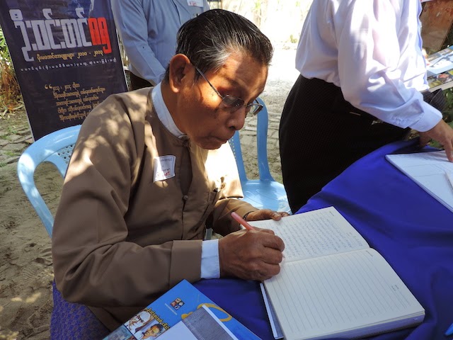 | ဘဘဦးတင္ဦး ဧည့္မွတ္တမ္း ေရးသားေနစဥ္ |