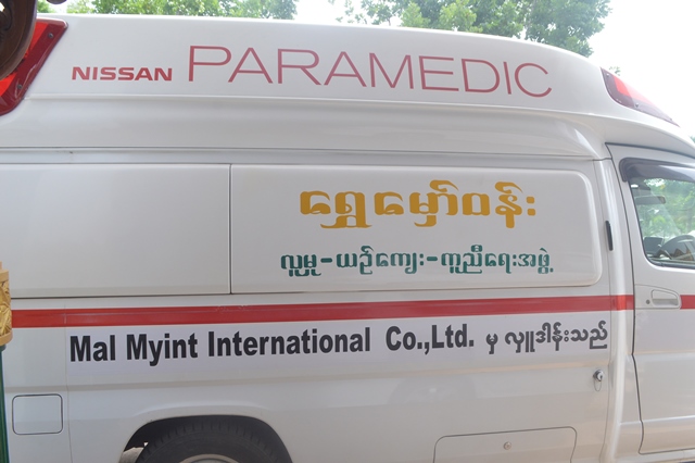 ထို႕ေနာက္ Mal Myint In’tal Co.Ltd မွ လွဴဒါန္းေသာ အေရးေပၚလူနာတင္ယာဥ္အား ေရႊေမွာ္ဝန္း လူမႈကူညီေရးအဖြဲ႕မွ လက္ခံရယူခဲ့သည္။