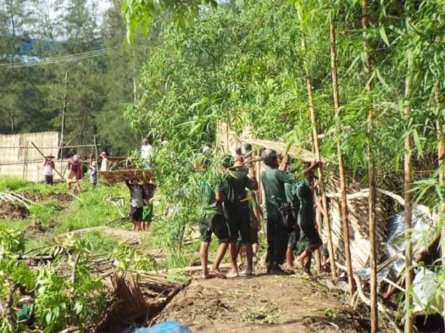 ေနစရာမရွိ၍ ဘုန္ႀကီးေက်ာင္းအတြင္း တည္ခုိေနေသာ ရြာသားမ်ားကုိ ေၾကးစားမ်ားကဓါးမ်ားျဖင့္ဝင္ေရာက္ခုတ္ (ဟန္သစ္ႏုိင္၊ မုိးမခ၊ ဇြန္ ၁၄၊ ၂၀၁၅)