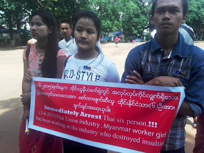 ထုိင္းလူမ်ိဳး (၆)ဦး က ျမန္မာမိန္းကေလအား အဓမၼျပဳက်င့္ခဲ့သည္ကုိ ထုိင္းအစုိးရမွ အျမန္ဆုံး ေဖာ္ထုတ္ေပးရန္ ျမန္မာတို႔ ဆႏၵျပ