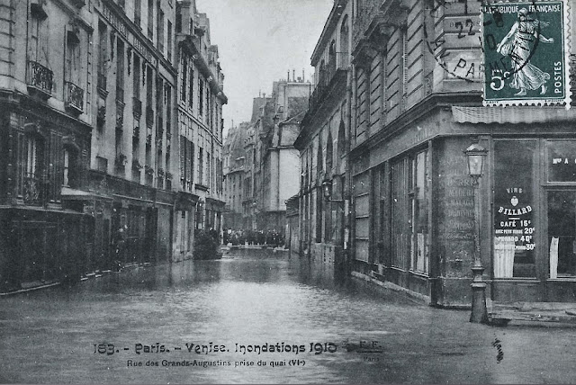 ၁၉၁၀ ခုႏွစ္ စဲန္းျမစ္ ေရႀကီးစဥ္က Rue des Grands-Augustins (Photo Google) |