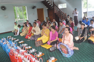 ဦးခင္ေအာင္ ေဒၚလဲ့လဲ့ေအး မိသားစု ဆြမ္းကပ္ေနစဥ္ |