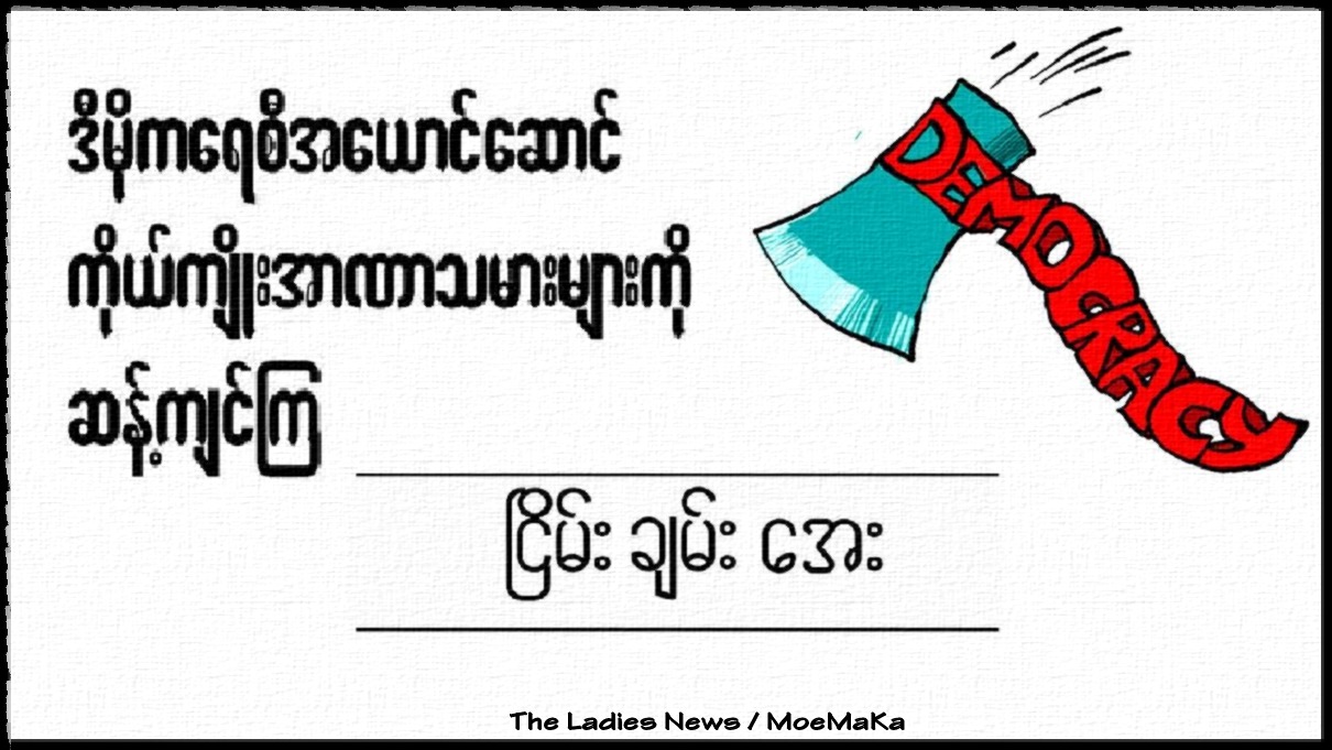 မ်က္ေမွာက္ ဒီမိုကေရစီ ႏိုင္ငံေရးမွာလည္း ဟိုအရင္ အာဏာရွင္ဆန္ လူထု အက်ိဳးစီးပြားကို ႏွစ္ငါးဆယ္ေက်ာ္ စနစ္တက် ဖ်က္ဆီးခဲ့ၾကသူမ်ား၊ တိုင္းျပည္ကို အေထြေထြ ဆုတ္ယုတ္ ပ်က္စီးေစခဲ့သူမ်ားဟာ ဝတ္စံုလဲ အေရာင္ေျပာင္းၾကရင္းနဲ႔ အခုဆိုရင္ လူထုအသံညံ၊ ဒီမိုကေရစီ စကား ေခ်ာင္းစီး၊ ဗိုလ္ခ်ဳပ္ေအာင္ဆန္းဝါဒ က်င့္သံုးေတာ့မဟန္ ေလထြားေနၾကပါၿပီ။ စစ္အင္အားႀကီးထြားေရး၊ စစ္တပ္ႀကီးစိုးေရး၊ စစ္အုပ္ခ်ဳပ္ေရး ခိုင္ျမဲေရး မူဝါဒေတြနဲ႔ ျပည္တြင္းစစ္မီးကို ရည္ရြယ္ခ်က္ရွိရွိ ႏိုင္ငံေရးအရ အဆံုးတိုင္ မေျဖရွင္းဘဲ စနစ္တက် လက္နက္နဲ႔ ေျဖရွင္း တိုက္လိုက္၊ နားလိုက္ ရာစုဝက္ေက်ာ္ လုပ္ခဲ့သူမ်ားက အခု ဖက္ဒရယ္ျပည္ေထာင္စု တည္ေထာင္ေရး စကားကိုပါ ေျပာထြက္လာၾကပါၿပီ။ ေခတ္အဆက္ဆက္ လယ္သိမ္း၊ ယာသိမ္း၊ ေျမသိမ္း၊ ျပည္သူ႔ပစၥည္းကို လူတစ္စုပိုင္ ဦးပိုင္၊ စစ္ပိုင္ အမ်ိဳးမ်ိဳး လုပ္ခဲ့ၾကသူမ်ားဟာ အခုဆိုရင္ ျပည္သူ႕အက်ိဳးစီးပြားကို ကာကြယ္မယ္ဆိုတဲ့ စကားအလွေတြ အာေပါင္အာရင္းသန္သန္ ဆိုေနၾကပါၿပီ။ ေထရ္ႀကီးဝါႀကီး သိကၡာရွိ သံဃာေတာ္ ဆရာေတာ္ႀကီးမ်ားကို ႏိုင္ငံေရး ရည္ရြယ္ခ်က္နဲ႔ ေခတ္အဆက္ဆက္ ေထာင္ခ်၊ ဖိႏွိပ္၊ ဘုန္းႀကီးေက်ာင္းသိမ္း၊ သိမ္ဖ်က္၊ ဘုရားၿဖိဳ၊ သံဃာ မီးဗံုးခြဲ က်ည္ဆန္ ဆြမ္းေကၽြး၊ နံပါတ္တုတ္ ပူေဇာ္ လုပ္ခ်င္တိုင္း လုပ္ခဲ့သူမ်ားက အခုေတာ့ အမ်ိဳး၊ ဘာသာ၊ သာသနာ ေစာင့္ေရွာက္သူ ဘုရား ဒါယကာ၊ ေက်ာင္း အလွဴ႕ရွင္ႀကီးမ်ား ပံုဖမ္း ဘာသာေရး၊ လူမ်ိဳးေရးကို အသံုးခ်ေနၾကပါၿပီ။
