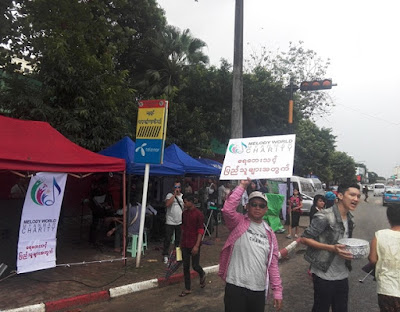 ျမန္မာႏုိင္ငံ၏ေရေဘးသင့္ေနရာမ်ားသုိ႔သြားေရာက္လွဴဒါန္းႏုိင္ရန္အတြက္ ႏုိင္္ငံေရးအင္အားစု မ်ား၊ ေက်ာင္းသားလူငယ္မ်ား၊ လူမႈေရးအဖဲြ႔စည္းမ်ား၊ကဗ်ာဆရာမ်ား၊ စာေရးဆရာမ်ားႏွင့္ အႏုပညာရွင္ မ်ားက ၿမိဳ႕နယ္အသီးသီးရွိ ေစ်းွမ်ား၊ အိမ္မ်ား၊ကားမ်ားေပၚရွိခရီးသည္မ်ားအား လမ္းေလွ်ာက္၍ လုိက္လံအလွဴခံ လွ်က္ရွိေနသည္။ အလွဴရွင္မ်ားကလည္းအဝတ္အစားမ်ား၊ စားစရာမ်ား၊ ေဆးမ်ား၊ အလွဴေငြမ်ားကုိ တတ္အားသေရြ႕ထည့္ဝင္လွဴဒါန္းၾကသည္။