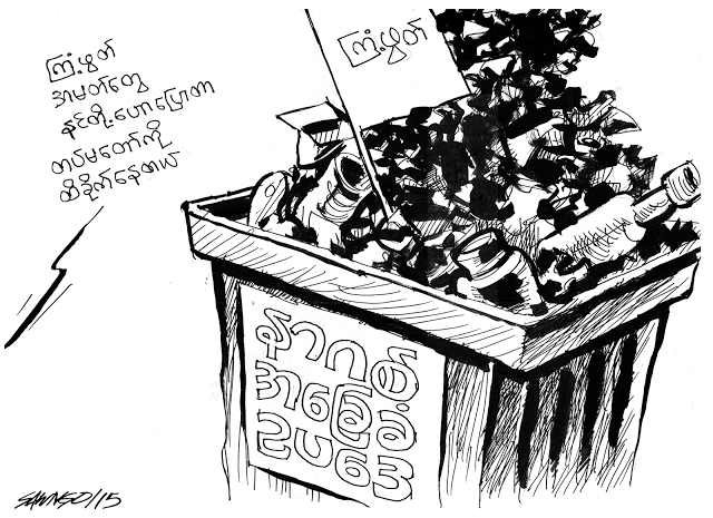 သမၼတႀကီးဦးသိန္းစိန္ အမွဴးရိွတဲ့ လႊတ္ေတာ္အစိုးရဟာ “မိဘျပည္သူမ်ားခင္ဗ်ာ” လို႔ ေလခ်ိဳေသြးၿပီး ျပဳျပင္ေျပာင္းလဲေရးစီမံကိန္းေတြခ်မွတ္ခဲ့ေပမဲ့ မည္မည္ရရ ဘယ္စီမံကိန္းမွ မေအာင္ျမင္ခဲ့ဘူးခင္ဗ်။ သည္လိုသည္လိုနဲ႔ ငါးႏွစ္တာက ကုန္ဆံုး ေတာ့မွာ ျဖစ္တဲ့အတြက္ ၂၀၁၅ ေရြးေကာက္ပြဲ ဆိုသဟာႀကီး ျဖစ္လာတာကိုး။