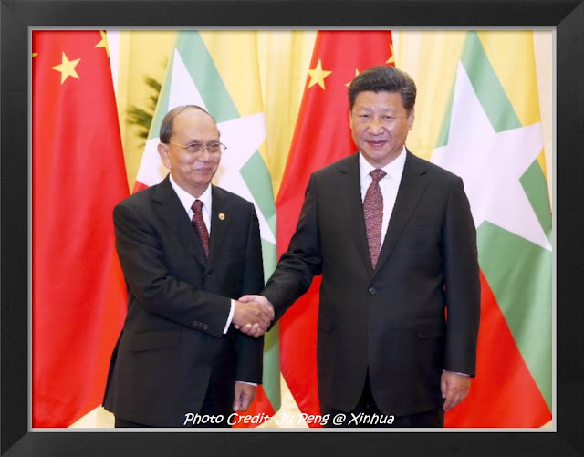 ေခါင္းစီးဓာတ္ပံု – ၂၀၁၅ ခုႏွစ္၊ စက္တင္ဘာ ၄ ရက္ေန႔က သမၼတ ဦးသိန္းစိန္ တရုတ္ သမၼတ ရွိက်င္းပင္း တရုတ္ႏိုင္ငံ ၿမိဳ႕ေတာ္ ေဘဂ်င္းမွာ ေတြ႕ဆံုစဥ္။ ဓာတ္ပံု – Xinhua/Ju Peng