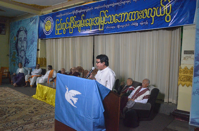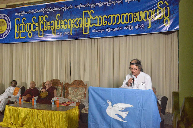 ဆရာႀကီးသခင္ကုိယ္ေတာ္မႈိင္း ၿငိမ္းခ်မ္းေရးကြန္ရက္၊ အရပ္ဘက္လူမႈအဖြဲ႕အစည္းမ်ားႏွင့္ ဒီမုိကေရစီ အင္အားစုမ်ားက ရန္ကုန္ၿမိဳ႕၊ ဗုိလ္တေထာင္ၿမိဳ႕နယ္၊ သိမ္ျဖဴလမ္း၊ မဂၤလာရာမပါဠိတကၠသုိလ္၊ စိန္ရတုခန္းမမွာ လက္ရွိ ျပည္တြင္း ၿငိမ္းခ်မ္းေရး အေျခအေနအေပၚ အျမင္ သေဘာထားဖလွယ္ပြဲတရပ္ကုိ ၂ဝ၁၅ ခုႏွစ္၊ စက္တင္ဘာ ၇ ရက္ေန႔ ေန႔လည္ပုိင္း ၁ နာရီမွ ၃ နာရီအထိ က်င္းပခဲ့ပါတယ္။
