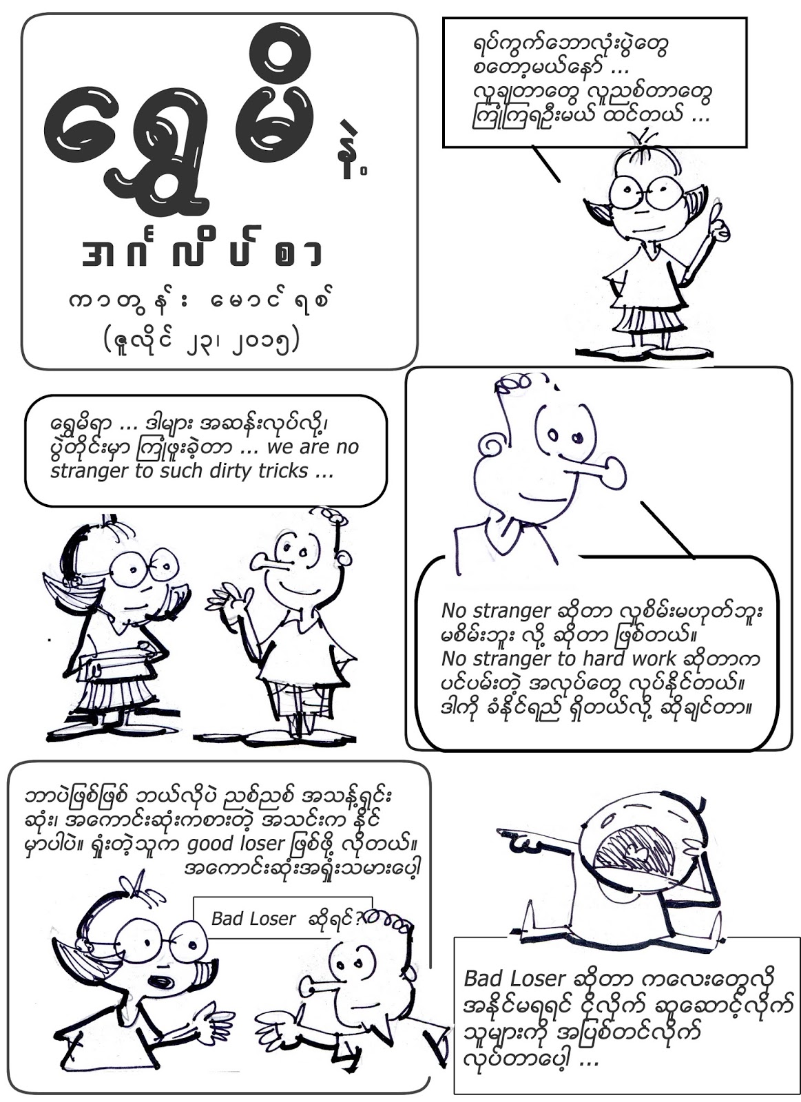 ကာတြန္း ေမာင္ရစ္ – ေရႊမိနဲ႔ အဂၤလိပ္စာ – we are no stranger to dirty tricks