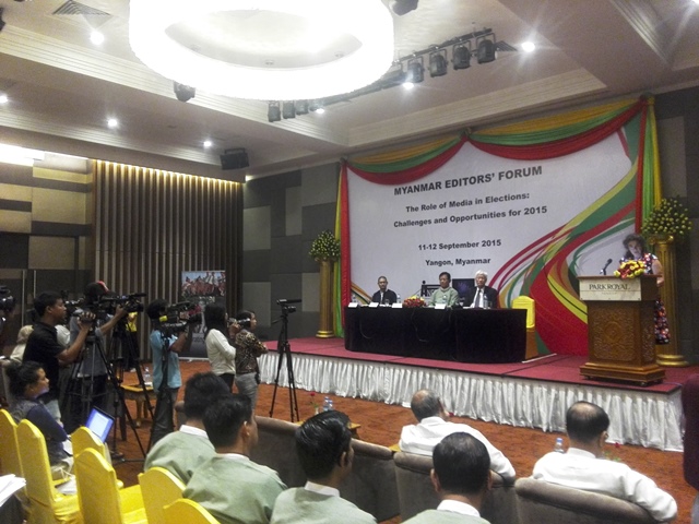ေရြးေကာက္ပဲြနွင့္ပတ္သက္ေသာ EDITOR’S FORUM ကုိ ျမန္မာဂ်ာနယ္လစ္ကြန္ရက္ (MJN)နွင့္ Asia Network for Free Elections (ANFREL)တုိ႔ပူးေပါင္းၿပီး ရန္ကုန္ၿမိဳ႕ Park Royal ဟုိတယ္တြင္ စက္တင္ဘာ ၁၁ရက္၊ ၁၂ရက္ ျပဳလုပ္မည္ျဖစ္သည္။ ၄င္းေဆြးေႏြးပဲြအခမ္းအနားဖြင့္ပဲြကုိ ျပည္ေထာင္ စုေရြးေကာက္ ပဲြေကာ္မရွင္ ဥကၠဌဦးတင္ေအး၊ ေနာ္ေဝးသံအမတ္၊ အိႏိၵယသံအမတ္၊ အေမရိကန္သံရုံးမွ ပုဂၢၢဳိလ္မ်ား ၊ ျပည္ပသတင္းမီဒီယာသမားမ်ားႏွင့္ ျပည္တြင္းသတင္းသမား မ်ားတက္ေရာက္ခဲ့ၾကသည္။