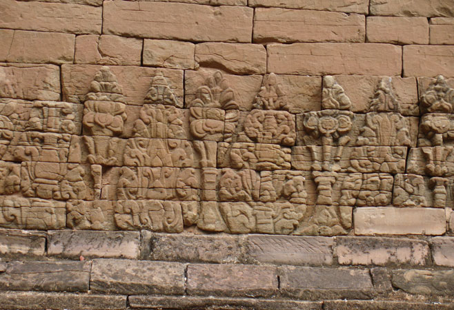 ဘီလူးပန္းဆြဲေတြ၊ ပန္းတန္းေတြ၊ ဘီလူးရုပ္၊ မိန္းမငယ္ရုပ္၊ ကိႏၷရာရုပ္ စတဲ့ အလြန္တရာ လက္ရာေျမာက္တဲ့ ေက်ာက္ဆစ္ရုပ္ ေတြလည္း ရွိပါတယ္။