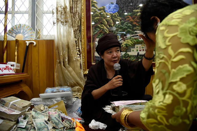 ပရိတ္သတ္ထဲတြင္ အိမ္ျခံေျမပြဲစားတစ္ဦးျဖစ္သူ အသက္ ၇၁ ႏွစ္အရြယ္ ေဒၚႏွင္းခုိင္လည္းပါသည္။ “ကြၽန္မကို ေငြေၾကးေျပ လည္ေအာင္ ကူညီမစဖို႔နဲ႔ က်န္တဲ့သူေတြလည္း အားလံုးအဆင္ေျပေအာင္ ေစာင့္ေရွာက္ဖို႔ အဘဆီမွာဆုေတာင္းခဲ့ပါတယ္” လို႔ သူကဆိုသည္။