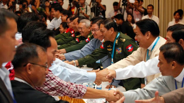 တကယ္ေတာ့ ဘယ္အဖြဲ႔ေတြ လက္မွတ္ထုိးမယ္/ ဘယ္အဖြဲ႔ေတြ လက္မွတ္မထိုးဘူးဆုိတာ ဦးသိန္းစိန္တုိ႔၊ ဦးေအာင္မင္းတို႔ ႀကိဳတင္သိထားၿပီးသားျဖစ္ပါတယ္။ လြန္ခဲ့တဲ့ေဖေဖၚဝါရီလ ၁၂ ရက္ေန႔မွာ လက္မွတ္ေရးထုိးခဲ့ၾကတဲ့ “ၿငိမ္းခ်မ္းေရးနဲ႔ အမ်ိဳးသားျပန္ လည္သင့္ျမတ္ေရးဆုိင္ရာကတိျပဳခ်က္” ဆုိတာမွာ ပါဝင္လက္မွတ္ေရးထုိးခဲ့တဲ့ အဖြ႔ဲ ၄ ဖြဲ႔၊ ၾသဂုတ္လ ၁၇ ရက္ေန႔မွာ “တစ္ႏုိင္ငံလံုး ပစ္ခတ္တုိက္ခုိက္မႈရပ္စဲေရးသေဘာတူစာခ်ဳပ္(NCA)အား လက္မွတ္ထုိးျခင္းဆုိင္ရာပူးတြဲသတင္းထုတ္ျပန္ခ်က္”မွာ ပါဝင္လက္မွတ္ေရး ထုိးထားတဲ့ အဖြဲ႔ ၄ ဖြဲ႔ဟာ ဦးသိန္းစိန္တုိ႔ ဦးေအာင္မင္းတို႔ ေဘာင္းဘီအိတ္ထဲေရာက္ေနတဲ့ အဖြဲ႔ေတြျဖစ္ပါတယ္။ အဲဒီ ၄ ဖြဲ႔က