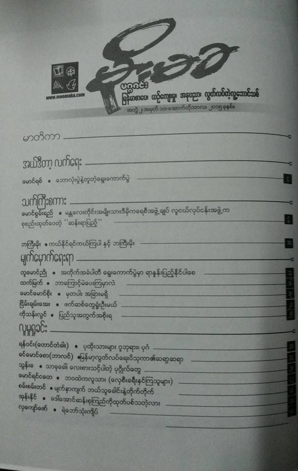 မိုုးမခ လစဥ္ ပုုံႏွိပ္မဂၢဇင္း ေအာက္တိုုဘာလအတြက္ တကယ္ထြက္ပါျပီ