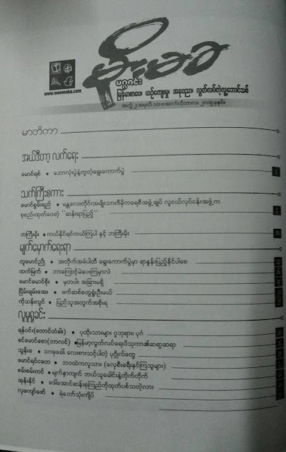 “ မထြက္ႏိုုင္ေတာ့ဘူးမိုု႔လား၊ မထြက္ေတာ့ဘူးမိုု႔လား လိုု႔ …” အမ်ားျပည္သူေတြ တေမးတည္း ေမးေနၾကတဲ့ မိုုးမခလစဥ္ ပုုံႏွိပ္မဂၢဇင္း ေအာက္တိုုဘာလထုုတ္ ယေန႔ ရန္ကုုန္မွာ ထြက္ရွိပါျပီ။