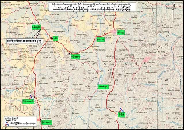 ထိ့ုျပင္ SSA ဝမ္ဟိုင္းအေနႏွင့္ ေအာက္တိုဘာ၁၆/၁၈/၂၆ မ်ားတြင္ ၎ ဝိန္းေကာင္တပ္ရင္းဌာနခ်ဳပ္အား၎ ေအာက္တိုဘာ ၂၄/၂၈ မ်ားတြင္ မိုင္းရွဴးျမိဳ့နယ္ မိုင္းစံရြာရွိ တပ္ရင္းဌာခ်ဳပ္အား၎ လက္နက္ျကီး လက္နက္ငယ္မ်ားျဖင့္ ေႏွာင့္ယွက္ပစ္ခတ္ခ့ဲ သည္ဟု ျမဝတီသတင္းတြင္ေဖၚျပပါသည္။