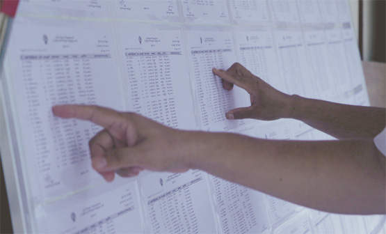 ဦးေလးၾကီးလက္ထဲ တံဆိပ္တံုး ထည့္ေပးလိုက္ေတာ့ တံုတံုရင္ရင္နဲ႔ မဲစာရြက္မွာ အထက္ေအာက္ ေရြးခ်ယ္ရမယ့္ပါတီကို ရွာေနတယ္။ တကယ္ကို ရင္တထိတ္ထိတ္နဲ႔။ အၾကည့္ရပ္ျပီး စူးစိုက္မႈ ထိုးက်သြားတဲ့ေနရာကို အေရာက္မွာေတာ့ …
