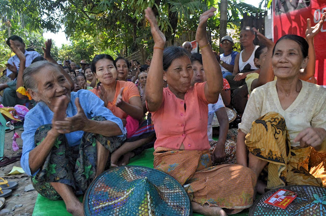 ဆင္ေခါင္း၊ ရခုိင္ျပည္နယ္ (Myanmar Now) – အမ်ဳိးသားဒီမိုကေရစီအဖြဲ႔ခ်ဳပ္ (NLD) ကိုယ္စားလွယ္ျဖစ္သူ ဦးစိုးဝင္းသည္ လက္တစ္ဖက္က ခပ္ႏြမ္းႏြမ္းပင္နီတိုက္ပံုကို ၿမဲၿမဲဆုပ္လ်က္၊ က်န္လက္တစ္ဖက္က စကားေျပာမိုက္ကရုိဖုန္းကို က်စ္က်စ္ပါေအာင္ကိုင္ထားၿပီး သူ၏ခႏၶာကိုယ္တစ္ခုလံုးကိုလည္း ေရွ႕ေနာက္ယိမ္းထိုးကာ ဆင္ေခါင္းေက်းရြာရွိ ရာဂဏန္းမွ်ေသာ ရခိုင္တိုင္းရင္းသားတစ္စုကို ေမးခြန္းမ်ား တရစပ္ ပစ္ထုတ္လိုက္သည္။