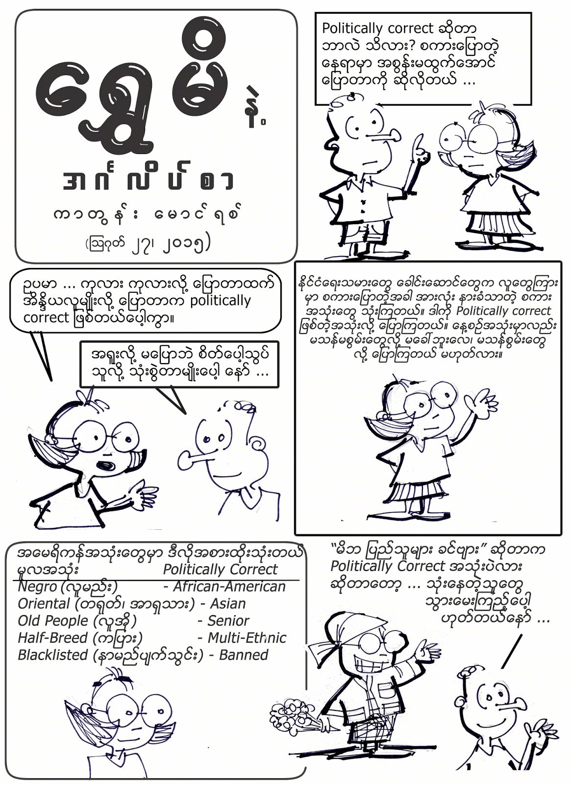 ကာတြန္း ေမာင္ရစ္ – ေရႊမိနဲ႔ အဂၤလိပ္စာ – Politically Correct