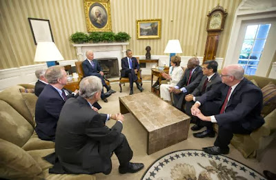 အေမရိကန္သမၼတ အိုုဘားမားကေတာ့ ႏိုုင္ငံေရးလုုပ္တာ လူၾကီးဆန္ဖိုု႔ ေျပာသြားပါတယ္။ တိုုင္းျပည္တျပည္လုုံးကိုု အၾကပ္အတည္းဆိုုက္ေအာင္လုုပ္ျပီး ကုုိယ္သေဘာမတူတဲ့ဥပေဒတခုုကိုု တိုုက္ခိုုက္တာ မလုုပ္သင့္ဘူးလိုု႔ ျပစ္တင္လိုုက္ပါတယ္။ ဥပေဒအျဖစ္ အတည္ျပဳျပီးရင္ ဥပေဒေဘာင္အတြင္းကပဲ ဆက္ျပီး ေဆြးေႏြးညိွႏႈိင္းမႈေတြ ျပဳျပင္ေရး ျပင္ဆင္ေရးေတြ လုုပ္သင့္တယ္။ လႊတ္ေတာ္ထဲက အမတ္ေတြကေနျပီးေတာ့ သာမန္ျပည္သူေတြလိုုမ်ဳိး သပိတ္ေမွာက္တာ၊ ဆႏၵျပတာ၊ ပိတ္ဆိုု႔တာေတြ မလုုပ္သင့္ဘူးလိုု႔ သတင္းသုုံးသပ္သူေတြကလည္း ထင္ျမင္ၾကပါတယ္။