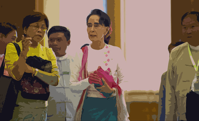 တကယ္ေတာ့ ကန္႔လန္႔ကာေနာက္ကြယ္မွ စစ္အာဏာရွင္ ကေစလႊတ္လုိက္တဲ့ ပံုစံမ်ိဳးစံုဆက္သားေတြနဲ႔ ေဒၚေအာင္ဆန္း စုၾကည္ ေတြ႔ဆံုစကားေျပာေနရတာျဖစ္တယ္လုိ႔ ေျပာရင္ရႏိုင္ပါလိမ့္မယ္။