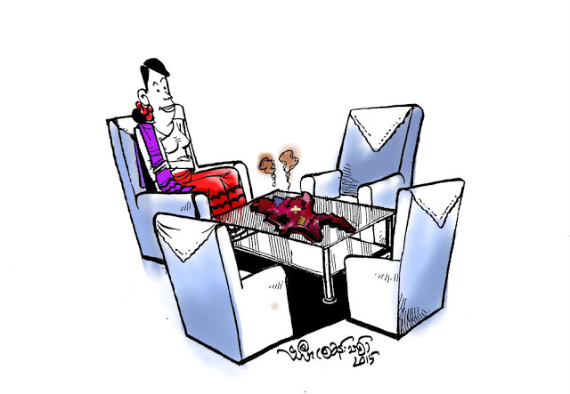 သမၼတႀကီးနဲ႔ ကာခ်ဳပ္နဲ႔ ေဒၚေအာင္ဆန္းစုၾကည္တို႔ရဲ႕ ေတြ႕ဆံုျခင္းဟာ ပကတိ ေခ်ာေမြ႕ၿပီး အဆင္ေျပေနတာကို ေတြ႕ရေပမဲ့ ျမန္မာႏိုင္ငံရဲ႕ အနာဂတ္ ရင္ဆိုင္ရမယ့္ ျပႆနာေတြကေတာ့ အမ်ားႀကီးမွ အမ်ားႀကီး ရိွေနပါတယ္။ တိုင္းရင္းသား လက္နက္ကိုင္အဖြဲ႕အစည္းမ်ားနဲ႔ အပစ္အခတ္ရပ္စဲေရးနဲ႔ ၿငိမ္းခ်မ္းေရးလုုပ္ေဆာင္ႏိုင္ဖို႔။ ဒါကေတာ့ ျပည္တြင္းစစ္ကို ရပ္စဲၿပီး ျပည္တြင္းၿငိမ္းခ်မ္းေရးကို ရရိွေအာင္ လုပ္ေဆာင္ၾကရမွာ ျဖစ္ပါတယ္။ ေငြေရးေၾကးေရး ေဖာင္းပြၿပီး တုိင္းျပည္က ဆင္းရဲတြင္းနစ္ေနရာက ကုန္းရုန္းထဖို႔ ႀကိဳးစားၾကရမွာ ျဖစ္ပါတယ္။ ျပည္တြင္း အေျခအေနအရပ္ရပ္က အႏုတ္လကၡဏာ ျပေနပါတယ္။