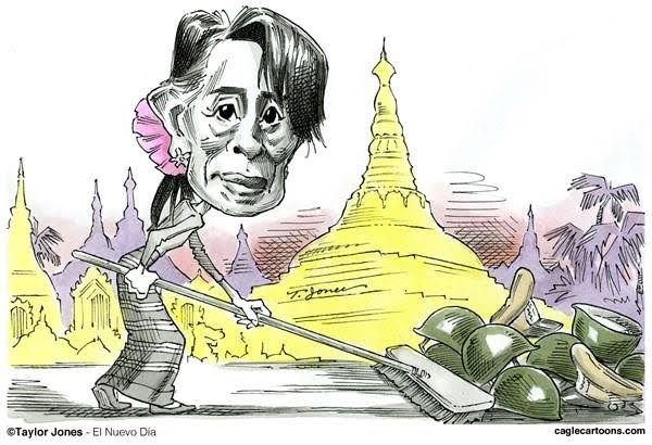 အရင္ဆိုခဲ့ဖူးသလိုပါပဲ။ ဒီတိုင္းျပည္ ေက်ာ္သူ အေယာက္တေထာင္မရွိလို႔ ဓားမေနာက္ပိတ္ေခြး ျဖစ္ေနျခင္းမဟုတ္ပါ။ ႏိုင္ငံ ေရးစနစ္ေကာင္းမရွိလို႔သာ ေခြးတိုးဝက္ဝင္ ဘဝေတြကို ခံစားရင္း ပရမ္းပတာ အမိႈက္ပံုႏိုင္ငံမွာ ေနေနရျခင္းျဖစ္ပါတယ္။