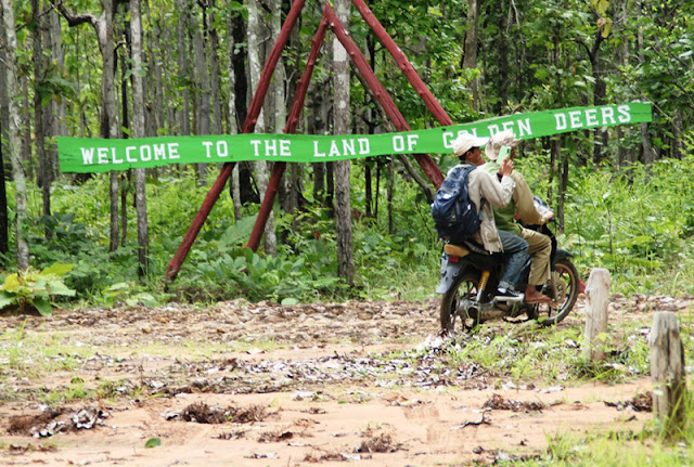 ခ်ပ္သင္းၿမိဳ႕ကေန ဆိုင္ကယ္နဲ႔ ေတာထဲကို ၂ မိုင္ခန္႔ ဝင္ေရာက္လိုက္တဲ့အခါမွာ ေဘးမဲ့ေတာ ေရွ႕တန္းစခန္းရံုးမွာ ေရႊသမင္ စံုတဲြပံုကုိ ရံုးနံရံမွာ ကပ္ထားတာေတြ႕လိုက္ရတယ္။