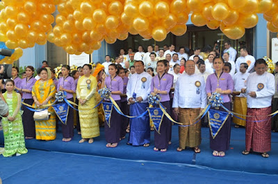 ေရႊဘဏ္ သစ္ ဖြင့္လွစ္ပြဲကို ယေန႔နံနက္ ၈ နာရီက အဆိုပါဘဏ္သစ္တည္ရိွရာ ရန္ကုန္တိုင္းေဒသႀကီး ၊ ေက်ာက္တံတားၿမိဳ႕နယ္ ၊ ကုန္သည္လမ္းႏွင့္ ပန္းဆိုးတန္းလမ္းေထာင့္၊ အမွတ္( ၆၆-၇၆) တြင္ က်င္းပျပဳလုပ္ခဲ့သည္။