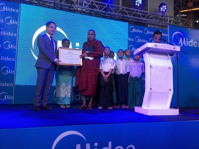 မႏၱေလး ရတနာ Shopping mall တြင္ အိမ္သုံးပစၥည္းမ်ားေရာင္းခ်ေသာေန႔တြင္ Midea ကုမၸၸဏီမွ မိဘမဲ့ကေလးမ်ားႏွင့္ ေက်ာင္းအတြင္းေနထုိင္ေသာ ဆရာ၊ဆရာမမ်ားအတြက္ အိမ္သုံးပစၥည္းအမ်ိဳးမ်ိဳးကုိ လွဴဒါန္းေထာက္ပံ့ခဲ့သည္။ အေျခခံကုန္ၾကမ္းပစၥည္းမ်ားထုတ္လုပ္သည့္ အႀကီးမားဆုံးကုမၸဏီျဖစ္သည့္ Midea ကုမၸဏီသည္ တရုတ္ႏုိင္ငံ၏ နံပါတ္ (၁)အိမ္သုံးကုန္ပစၥည္းမ်ား ထုတ္လုပ္တင္ပုိ႔ေရာင္းခ်ေနသည့္ ကုမၸၸဏီ တစ္ခုျဖစ္သည္ဟုသိရသည္။