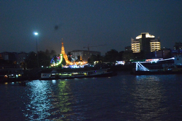 ညေနဆိုရင္ ျမစ္ကမ္းေဘးက သေဘၤာၾကီး ၅စီးေလာက္ကိုတက္ျပီး ညစာ ေစ်းခ်ိဳခ်ိဳနဲ႕ စားေသာက္ႏိုင္တယ္။ သေဘၤာ၃ထပ္ ဆိုရင္ အထပ္တိုင္း တီးဝုိင္းရွိပါတယ္။ စားေသာက္စားရိတ္က လူတစ္ေယာက္ကို က်ပ္၅ေထာင္ေလာက္ဆို ေကာင္းေကာင္း စားႏိုင္ပါျပီ။ ပိုက္ဆံပိုေပးသူမ်ားကေတာ့ ညပိုင္းသေဘၤာထြက္ခ်ိန္ လိုက္စီးၾကပါတယ္။