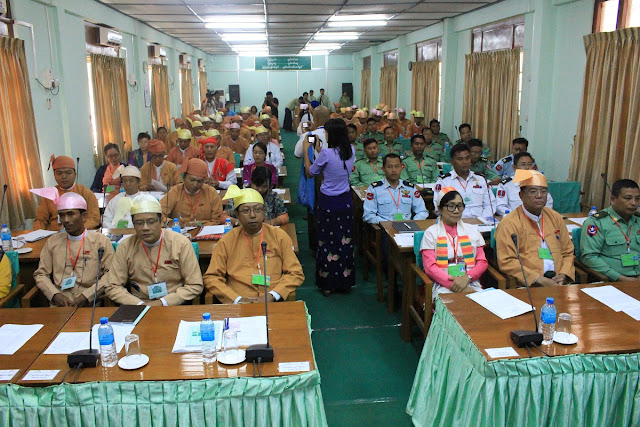 ေနရာထိုင္ခင္း က်ယ္ဝန္းျခင္း မရိွတဲ့ ဧရာဝတီတိုင္းေဒသႀကီးလႊတ္ေတာ္ တနလၤာေန႔က ျပန္လည္ အစျပဳရာမွာ ပင္နီေရာင္ဖံုးလႊမ္းေနတာ ေတြ႔ရပါတယ္။ က်န္တာကေတာ့ တပ္မေတာ္သားကုိယ္စားလွယ္မ်ားနဲ႔ တုိက္ပံုျဖဴဝတ္ဆင္သူ တစ္ဦးစ ႏွစ္ဦးစသာ ရိွတဲ့အတြက္ ရန္ကုန္လႊတ္ေတာ္နဲ႔ ကုိယ္စားလွယ္အခ်ဳိးအစား အတူတူေလာက္ပါပဲ။
