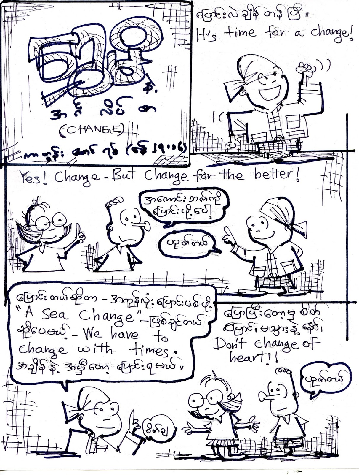 ကာတြန္း ေမာင္ရစ္ – ေရႊမိနဲ႔ အဂၤလိပ္စာ – Time for a change