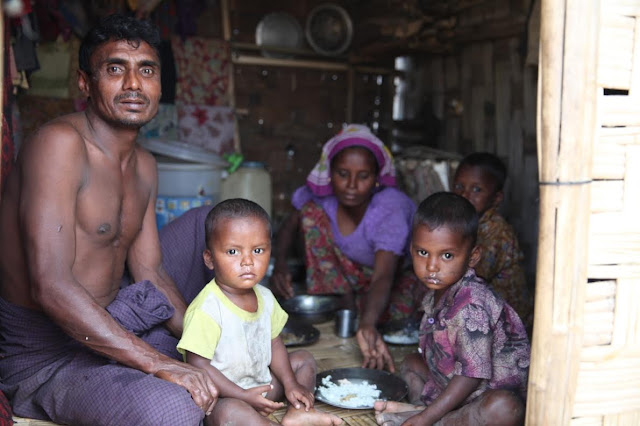 ရခုိင္ျပည္နယ္ သက္ကယ္ျပင္ ဒုကၡသည္စခန္းတြင္ မၾကာေသးင္က ေတြ႔ရေသာ ၄၃ ႏွစ္အရြယ္ ရိုဟင္ဂ်ာ/ဘဂၤါလီ အမ်ဳိးသား ဦးဝင္းႏိုင္၊ ၎၏ ဇနီး ႏွင့္ ကေလးသံုးေယာက္ (ဓာတ္ပံု – သင္းလဲ့ဝင္း/Myanmar Now) |