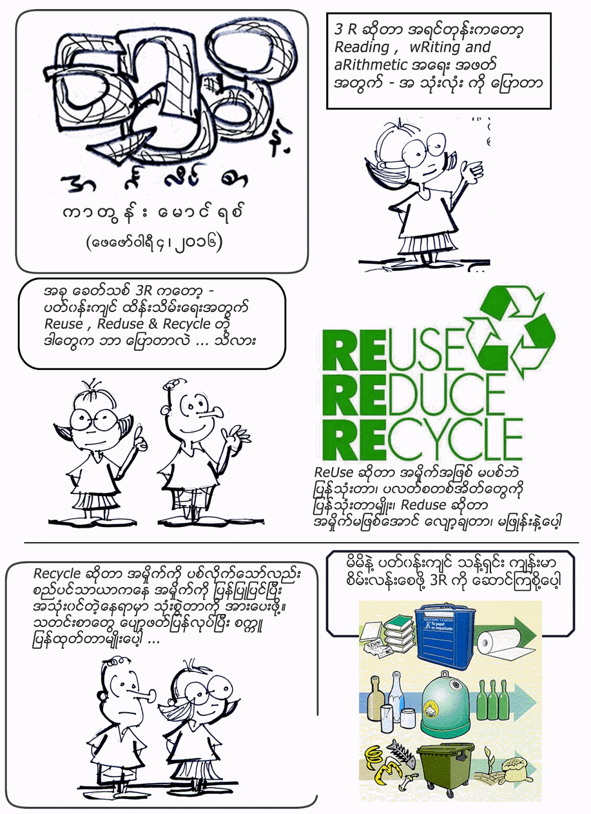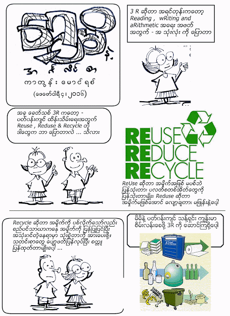 ကာတြန္း ေမာင္ရစ္ – ေရႊမိနဲ႔ အဂၤလိပ္စာ ( Reuse, Reduce & Recycle)