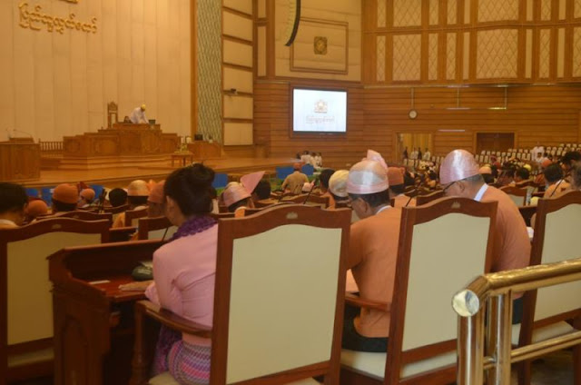 | မတ္လ ၁ဝ ရက္ေန႔ ျပည္သူ႔လႊတ္ေတာ္အတြင္း ဒုသမၼတ အမည္စာရင္း တင္သြင္းမႈ ျမင္ကြင္း (PHOTO:- ေဆြဝင္း/Myanmar Now) |