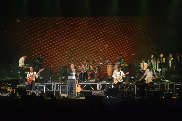 Evening Star Band ႏွင့္အတူ ပရိသတ္ႀကီးအား အားပါးတရ ေဖ်ာ္ေျဖေနေသာ ေအာင္ရင္အား ေတြ႕လိုက္ရသည္။