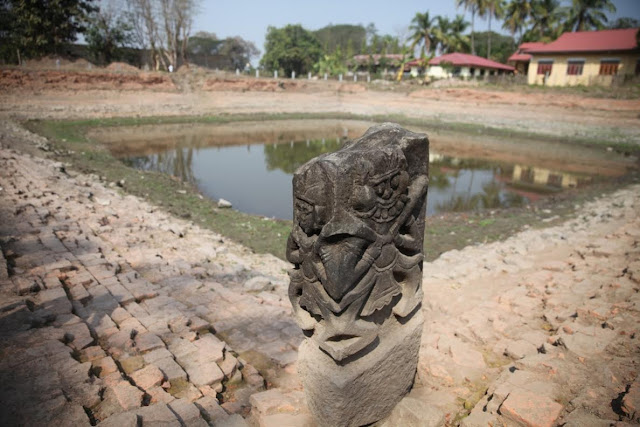 ေျမာက္ဦးနန္းေတာ္ေဟာင္းေနရာမွာ မၾကာမီက ျပန္လည္တူးေဖာ္ထားတဲ့ေရကန္အနီးမွ ဘီလူးရုပ္ |