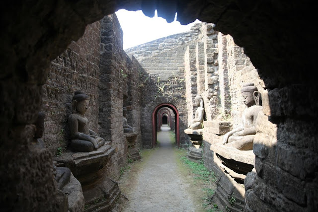 အတြင္းပုိင္းမွာေတာ့ ခန္႔ခန္႔ညားညား ထည္ထည္ဝါဝါပါပဲ။ ရွည္လ်ားတဲ့ ေက်ာက္လမ္း တစ္ေလွ်ာက္ ႐ုပ္ပံုအေသးေလးေတြ အႏုစိတ္ထုဆစ္ထားၿပီး ပံုစံမ်ဳိးစံု၊ အရြယ္မ်ဳိးစံု ဗုဒၶဆင္းတုေတာ္ေတြကလည္း ေထာင္နဲ႔ခ်ီရွိေနပါတယ္။ ေျမာက္ဦးဟာ ႏုိင္ငံအလယ္ပုိုင္း ေရွးေဟာင္းၿမိဳ႕ေတာ္ပုဂံမွာေလာက္ ဘုရား၊ ေစတီေတြ မမ်ားပါဘူး။ ပုဂံမွာကေတာ့ ခရီးသြားလုပ္ငန္းေတြ၊ အစိုးရနဲ႔ အဆက္အသြယ္ေကာင္းတဲ့ ကုမၸဏီေတြရဲ႕ ဟိုတယ္လုပ္ငန္းေတြထူေထာင္ဖို႔ ေရွးေဟာင္း အေမြအႏွစ္ဇုန္ထဲမွာ ေနထိုင္သူ ရြာသားေတြကို အာဏာပိုင္ေတြက ဖယ္ရွားခဲ့ပါတယ္။