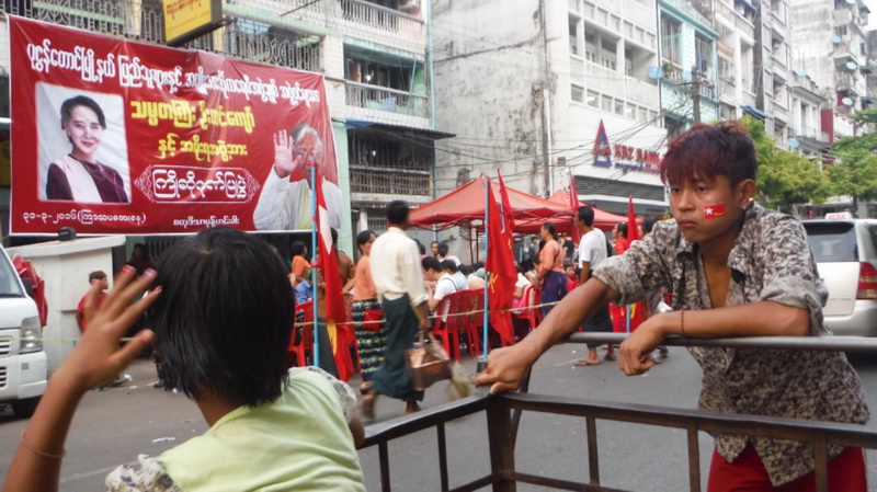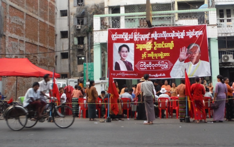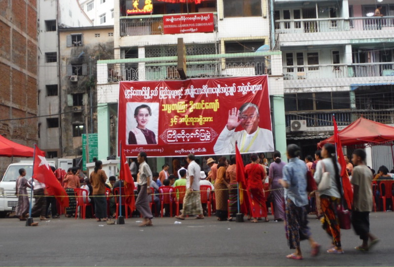 ဗိုလ္ခ်ဳပ္ေအာင္ဆန္းလမ္းေပၚရိွ အမ်ဳိးသား ဒီမိုကေရစီအဖဲြ႔ခ်ဳပ္ ရံုးေရွ႕တြင္ ျပဳလုပ္ေသာ အလွဴ