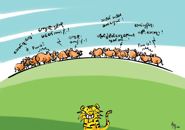 သုိ့ေသာ္ တဖက္ႏွင့္တဖက္ ခါးခါးသီးသီး တိုက္ခိုက္လာခ့ဲအခ်ိန္ကာလမ်ားက ရွည္ခ့ဲသည္။ ထိ့ုျပင္ ဒီမိုကေရစီေရးတိုက္ပြဲဝင္ျကသည္ဟု ဆိုသူမ်ားအခ်င္းခ်င္း မတူေသာအျမင္ မတူေသာအယူအဆမ်ားႏွင့္ အျပန္အလွန္ ထိုးႏွက္တိုက္ခိုက္လာျကသည့္ အာဃာတမ်ားရွည္ျကာခ့ဲသည့္ ျမန္မာျပည္တြင္ ေဆြးေႏြးျငင္းခုံအေျဖရွာသည့္ ယဥ္ေက်းမွဳ အျမန္ထြန္းကားလာရန္ လြယ္ကူလွသည္ေတာ့မဟုတ္ေပ။ ငါႏွင့္မတူငါ့ရန္သူဆိုသည့္ သေဘာထား ေတာထေနခ့ဲသည္ကို ရွင္းလင္းရန္ေတာ့လြယ္ကူမည္မဟုတ္ပါ။