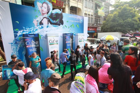 သၾကၤန္ရက္မ်ားတြင္လည္း Clear မွ Clear ေခါင္းေလွ်ာ္စက္ၾကီးမ်ား လာေရာက္အသုံးျပဳသူေတြကုုိ Clearရဲ႕ အသိအမွတ္ျပဳ ေဗာက္ေပ်ာက္ေခါင္းေလွ်ာ္ရည္မ်ား ျဖစ္တဲ့ Ice Cool Menthol နဲ႔ Clear Men Shampoo ေတြကို လက္ေဆာင္အျဖစ္ ေပးအပ္ခဲ့ပါတယ္။ လာေရာက္သူေတြကလည္း ေခါင္းေလွ်ာ္စက္ၾကီးမ်ားတြင္ အခမဲ့ ေခါင္းေလွ်ာ္ခဲ့ၾကျပီး ေပ်ာ္စရာဓာတ္ပုုံမ်ားလည္း အတူတကြ ရုုိက္ခဲ့ၾကပါတယ္။